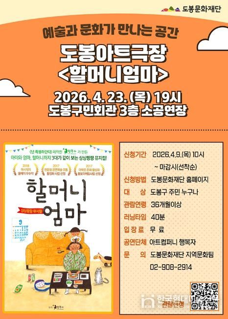 한국현대미술신문 배건 기자 | 서울 도봉구 도봉문화재단이 4월부터 10월까지 도봉구민회관 소공연장에서 어린이 대상 공연 프로그램 ‘도봉극장’을 운영한다.
