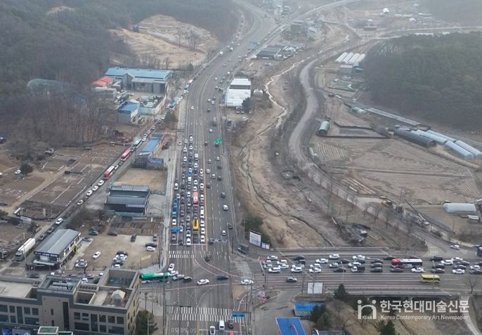 특히 신평화로(3번국도대체우회도로) 양주 방향에서 자금IC로 내려오는 구간은 대기행렬이 길게 이어져, 광사교차로부터 성모병원 앞 사거리까지 약 3.4km 구간에서 첨두시간(교통량이 가장 많은 시간) 평균 통행시간이 15~20분 정도 소요됐다.