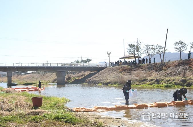한국현대미술신문 원진 기자 | 홍천군은 4월 7일 남면 송내교 일대에서 대규모 유류 유출 사고를 가정한 ‘수질오염사고 민관군 합동 대응 훈련’을 실시했다고 밝혔다.