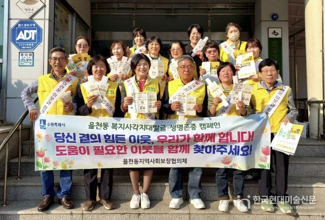 한국현대미술신문 배윤섭 기자 | 수원시 장안구 율천동 지역사회보장협의체는 지난 14일, 관내 곳곳을 돌며 복지사각지대 발굴 및 홍보를 위한 “찾아가는 복지수레 동네 한바퀴” 캠페인을 실시했다.