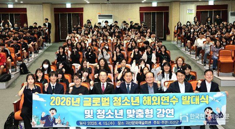 한국현대미술신문 신정은 기자 | 충북 괴산군은 15일 괴산문화예술회관에서 괴산고등학교 및 관내 중학교 학생들을 대상으로 ‘글로벌 청소년 해외연수 발대식’을 개최했다고 밝혔다.