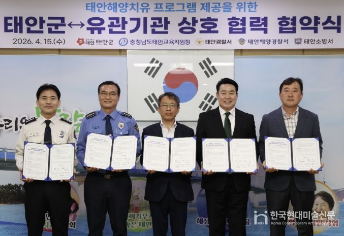 한국현대미술신문 신정은 기자 | 태안군이 지난 15일 군청 소회의실에서 태안해양치유센터와 관내 유관기관 간 공직자 심신 치유 및 복지 증진을 위한 업무협약을 체결하고 기관별 맞춤형 해양치유 프로그램 운영 기반을 마련했다.