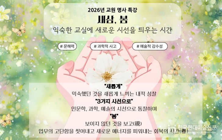 한국현대미술신문 정소영 기자 | 부산광역시교육청교육연수원은 오는 21일부터 6월 2일까지 3회에 걸쳐 연수원 대강당에서 교원 및 교육전문직원 400여 명을 대상으로 2026 명사 초청 특강 ‘새삼 봄’을 운영한다.
