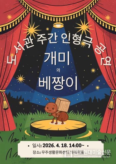 한국현대미술신문 기자 | 무주군이 도서관 주간(4.12.~18.)을 맞아 4월 18일 오후 2시부터 무주생활문화센터 다목적홀(지하 1층)에서 ‘배려와 존중’을 주제로 한 인형극 ‘개미와 베짱이’를 개최한다고 밝혔다.