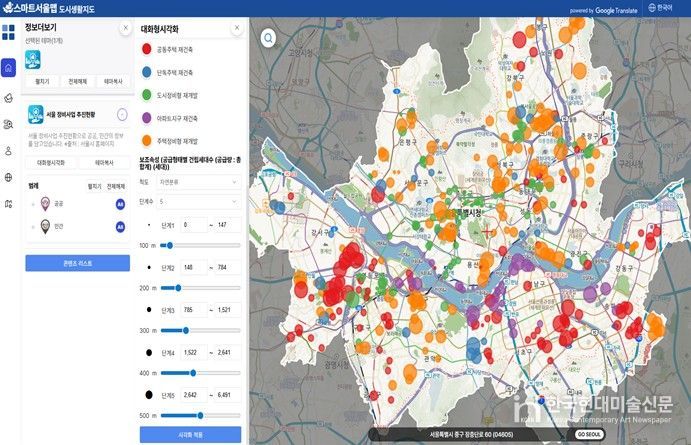 한국현대미술신문 배건 기자 | 서울시가 온라인 지도 서비스 ‘스마트서울맵’을 한 단계 업그레이드했다. 복잡한 정책 정보를 시민이 지도위에서 한눈에 이해할 수 있도록 한 ‘차세대 도시생활지도’와 ‘대화형 인구-정책지도’를 17일부터 새롭게 선보인다.