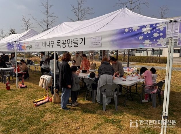 한국현대미술신문 배윤섭 기자 | 평택시는 지난 11일과 12일 이틀간 함박산중앙공원 배꽃 나들이 행사에서 목재 체험 부스를 운영했다.