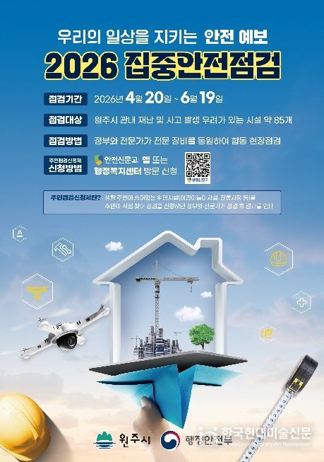 한국현대미술신문 원진 기자 | 원주시는 4월 20일부터 6월 19일까지 61일간 ‘2026년 집중안전점검’을 추진한다.