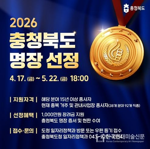 한국현대미술신문 신정은 기자 | 충북도는 산업현장에서 최고 수준의 숙련기술을 보유한 ‘2026년도 충청북도명장’을 선정한다고 17일 밝혔다.