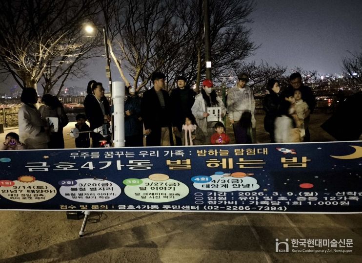 한국현대미술신문 배건 기자 | 서울 성동구 금호4가동에서는 지난 3월 14일부터 4월 3일까지 총 4회에 걸쳐 진행된 주민참여예산 사업 '별 헤는 밤' 프로그램이 주민들의 뜨거운 호응 속에 성공적으로 마쳤다고 밝혔다.
