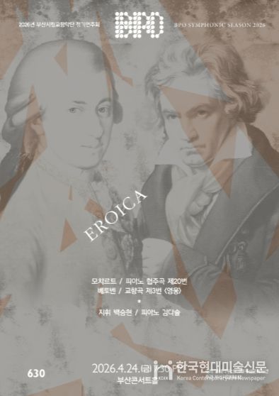 한국현대미술신문 정소영 기자 | 부산시립교향악단이 오는 4월 24일 오후 7시 30분, 부산콘서트홀에서 제630회 정기연주회 '에로이카(EROICA)'를 개최한다. 이번 공연은 고전주의의 균형에서 출발해 낭만주의의 확장으로 나아가는 흐름 속에서, 불안과 긴장을 넘어서는 인간의 의지를 조명하는 무대로 마련된다.