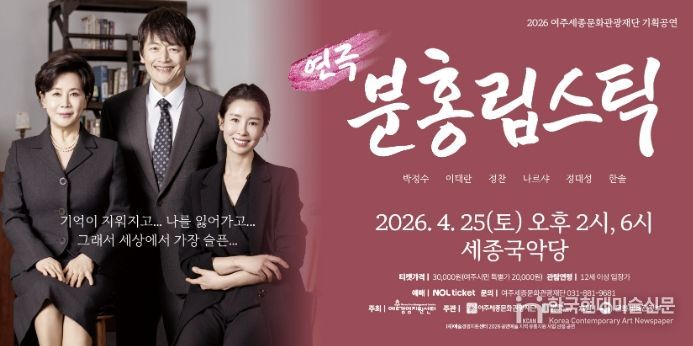 한국현대미술신문 배윤섭 기자 | 여주세종문화관광재단이 오는 4월 25일, 예술경영지원센터의 공모사업인 '공연예술 지역 유통지원 사업'의 일환으로 베테랑 배우들이 참여한 창작 연극‘분홍립스틱’을 세종국악당에서 개최한다.