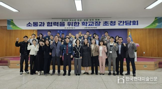 한국현대미술신문 배윤섭 기자 | 군포의왕교육지원청과 군포경찰서는 4월 16일 군포경찰서 4층 ‘수리관’에서 중학교 교장을 대상으로 학생 안전을 위한 간담회에 참여하여 학교폭력예방 및 학교장의 안전 관리 지원에 협력과 소통을 강화하기로 했다.