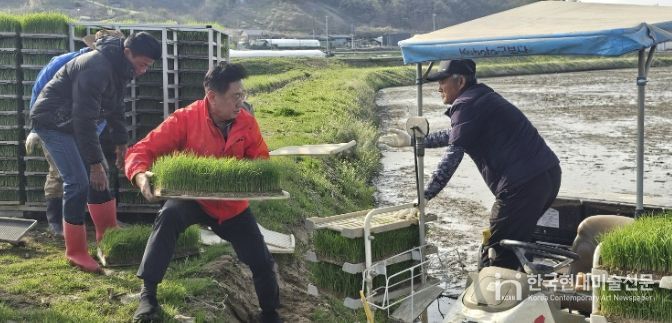 한국현대미술신문 배윤섭 기자 | 양평군은 지난 15일 지평면 수곡리에 위치한 전경복 농가에서 올해 첫 모내기를 실시했다고 밝혔다.