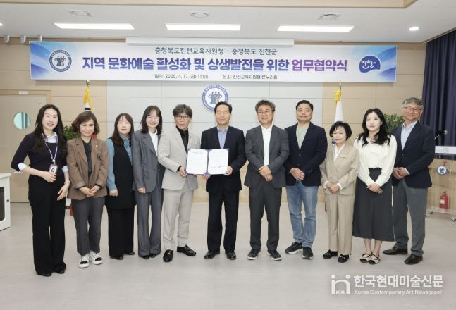 한국현대미술신문 신정은 기자 | 충북 진천군과 진천교육지원청은 17일 진천교육지원청 온누리홀에서 ‘지역 문화예술 활성화와 상생발전’을 위한 업무협약을 체결했다고 밝혔다.