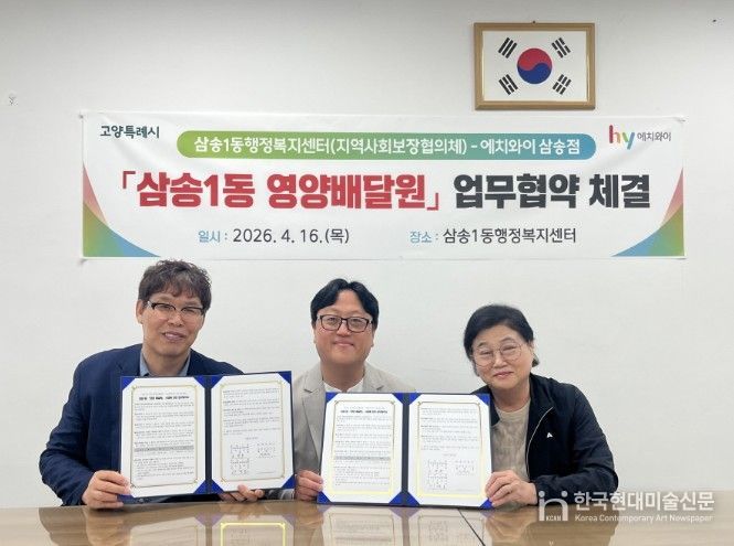 한국현대미술신문 배윤섭 기자 | 고양특례시 삼송1동은 지난 16일 취약계층의 건강과 안부를 동시에 살피는 ‘영양배달원’사업 추진을 위해 지역사회보장협의체와 ㈜에치와이 고양 삼송지점이 업무협약을 체결했다.