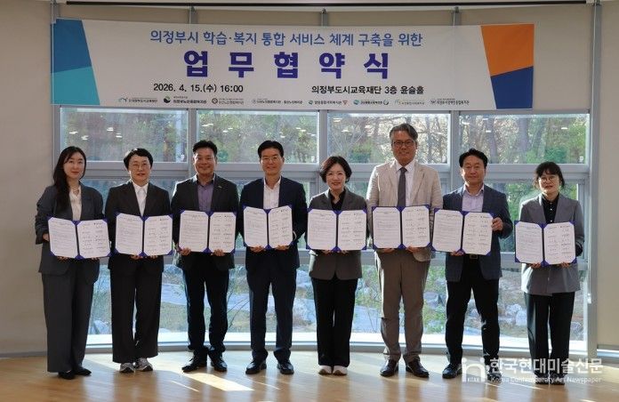 한국현대미술신문 배윤섭 기자 | 의정부도시교육재단은 4월 15일, 관내 7개 복지관과 함께 ‘의정부시 학습·복지 통합 서비스 체계 구축’을 위한 업무협약을 체결했다.