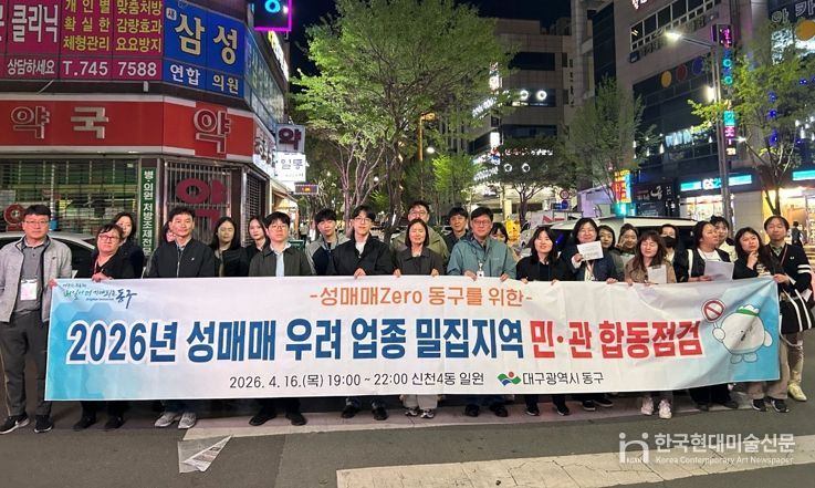 한국현대미술신문 정소영 기자 | 대구 동구청은 지난 16일, 신천동 동대구복합환승센터 일대에서 성매매 우려 업소를 대상으로 민·관 합동 야간 점검과 홍보 캠페인을 실시했다.