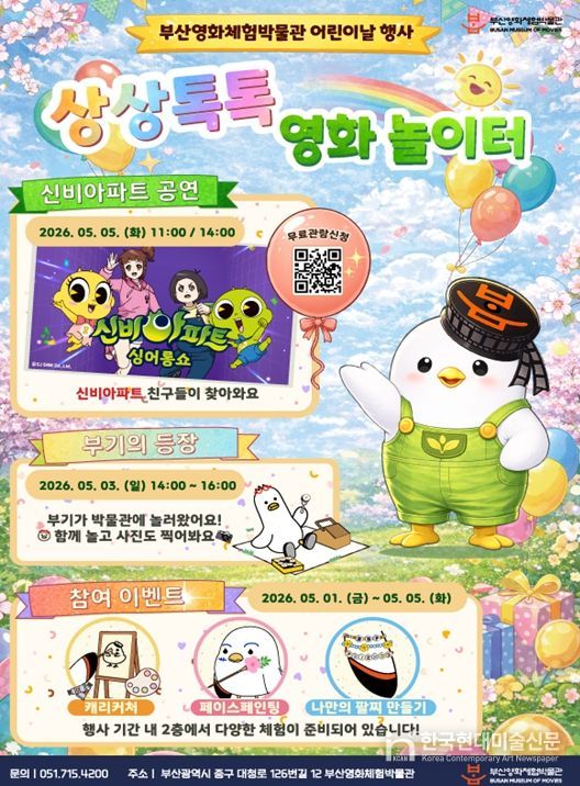 한국현대미술신문 정소영 기자 | 부산시는 부산영화체험박물관(관장 박채성, 중구 소재)에서 어린이날을 맞아 어린이와 가족 관람객을 위한 특별 행사 '상상톡톡 영화 놀이터 : 다 같이 놀자!'를 오는 5월 1일부터 5일까지 5일간 개최한다고 밝혔다.