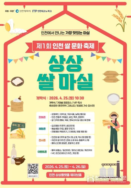 한국현대미술신문 박재남 기자 | 인천테크노파크(인천TP)는 오는 25일부터 26일까지 양일간 인천 중구 상상플랫폼에서 인천의 맛과 문화를 담은 ‘제1회 인천 쌀 문화축제(상상 쌀 마실)’를 본격 개막한다.