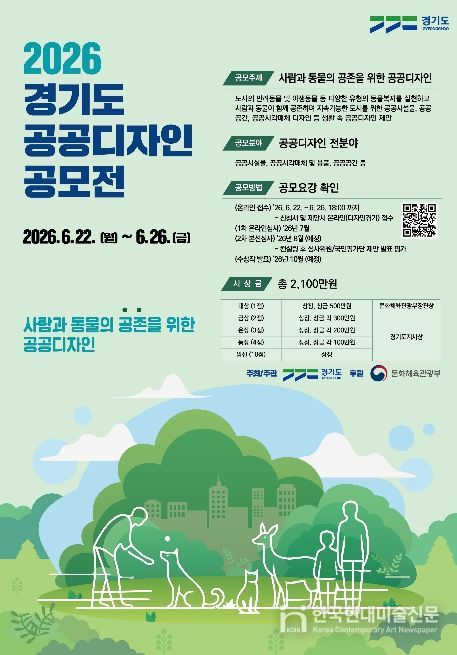 한국현대미술신문 배윤섭 기자 | 경기도가 ‘사람과 동물의 공존을 위한 공공디자인’이란 주제로 제20회 ‘2026년 경기도 공공디자인 공모전’을 6월 22일부터 26일까지 개최한다.