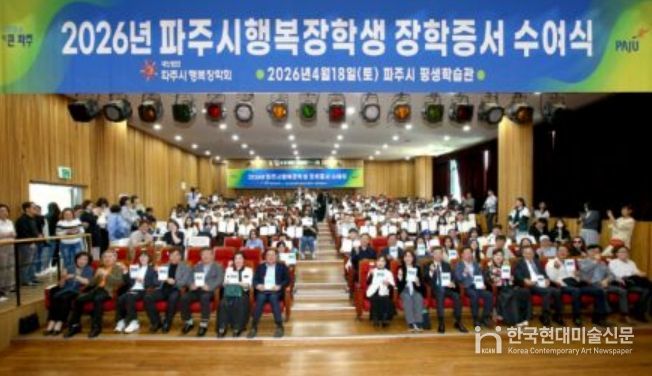 한국현대미술신문 배윤섭 기자 | 파주시는 (재)파주시행복장학회가 지난 18일 파주시 평생학습관 대공연장에서 학부모와 장학생 등 200여 명이 참석한 가운데 2026년 장학증서 수여식을 개최했다고 밝혔다.