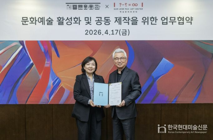 한국현대미술신문 배윤섭 기자 | 경기문화재단 백남준아트센터와 재단법인 세종문화회관은 4월 17일, 동시대 예술의 담론 확장과 지속가능한 창작 생태계 조성을 위한 업무협약(MOU)을 체결했다. 이번 협약은 양 기관의 상호존중과 신뢰를 바탕으로, 서울과 경기 지역을 연결하는 광역 문화권 공동제작 모델을 구축하기 위한 협력의 출발점으로 마련됐다.
