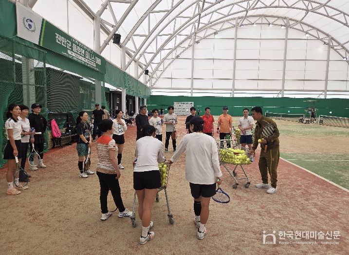 한국현대미술신문 기자 | 진안군 테니스선수단(감독 조효익)은 지난 18일 진안군 다목적구장에서 관내 테니스 동호회원들과 함께 재능기부 레슨을 진행하며 교류의 시간을 가지는 화합의 장을 마련했다.
