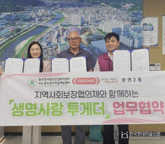 한국현대미술신문 배윤섭 기자 | 동두천시정신건강복지센터 부설 자살예방센터는 ‘생명사랑 투게더’사업 추진을 위해 지난 17일, 생연2동 행정복지센터 및 생연2동 지역사회보장협의체와 업무협약을 체결했다.