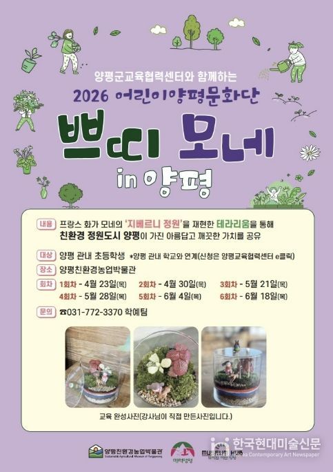 한국현대미술신문 배윤섭 기자 | 양평친환경농업박물관은 오는 4월부터 6월까지 양평 관내 초등학생을 대상으로 2026년 교육 프로그램 ‘어린이 양평문화단, 쁘띠 모네 in 양평’을 운영한다고 밝혔다.