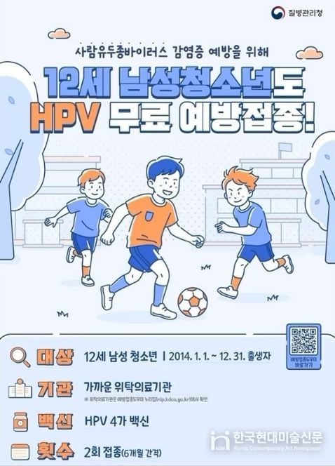 한국현대미술신문 배윤섭 기자 | 평택시는 사람유두종바이러스(HPV) 감염으로 인한 각종 암을 예방하기 위해 기존 여성 중심이던 HPV 국가예방접종 지원 대상을 12세 남성 청소년까지 확대하여 오는 5월 6일부터 시행한다고 밝혔다.