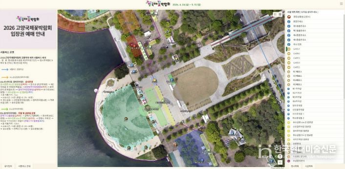 한국현대미술신문 배윤섭 기자 | 고양특례시는 2026고양국제꽃박람회 방문객들이 쉽고 편하게 위치를 확인할 수 있도록, 첨단기술을 활용한 고정밀 전자지도 기반의 디지털지도(안내도)를 제작·배포했다고 20일 밝혔다.
