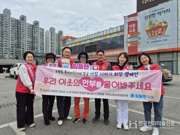 유공수 초평동 지역사회보장협의체 민간위원장은 “캠페인 활동을 통해 도움이 필요한 이웃을 조기에 발굴하고 지역 내 나눔 문화를 더욱 확대할 수 있는 뜻깊은 계기가 마련됐다”며 “앞으로도 지속적인 캠페인 활동을 이어가 따뜻한 손길이 끊이지 않는 지역사회를 만드는 데 최선을 다하겠다”고 말했다.
