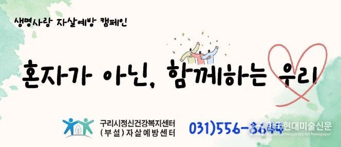 한국현대미술신문 배윤섭 기자 | 구리시는 자살률이 증가하는 3월부터 5월까지를 ‘생명 사랑 자살 예방 집중 홍보 기간’으로 지정하고, 시민의 소중한 생명을 보호하기 위한 예방 활동을 적극 추진하고 있다고 밝혔다.