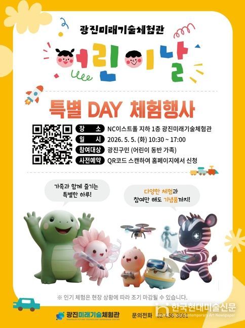 한국현대미술신문 배건 기자 | 광진미래기술체험관은 오는 5월 5일 어린이날을 맞아 가족과 함께 즐길 수 있는 ‘광진미래기술 체험데이’를 개최한다.