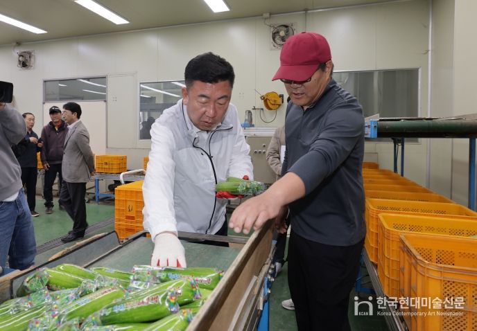 한국현대미술신문 신정은 기자 | 이범석 청주시장은 20일 흥덕구 오송읍에 위치한 청원생명 애호박 공동선별장을 방문해 공선 및 유통 현황을 점검하고 관계자와 지역 농민들을 격려했다.
