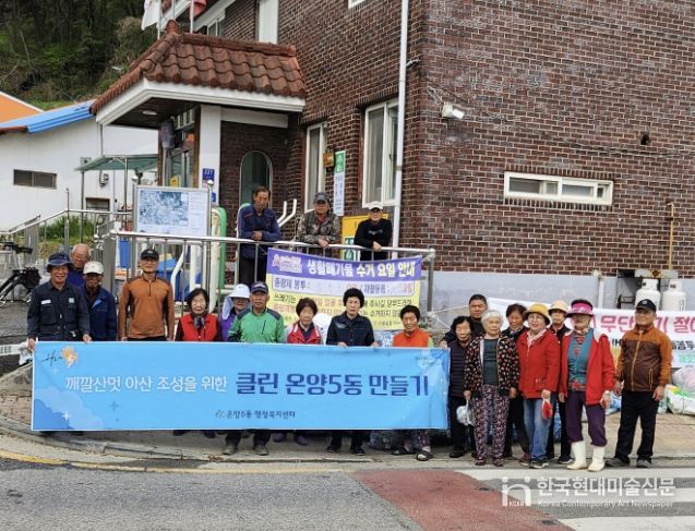 한국현대미술신문 신정은 기자 | 아산시 온양5동 초사1통 주민들은 20일 자발적으로 마을 환경정화 활동에 나서며 지역사회에 모범이 되고 있다.