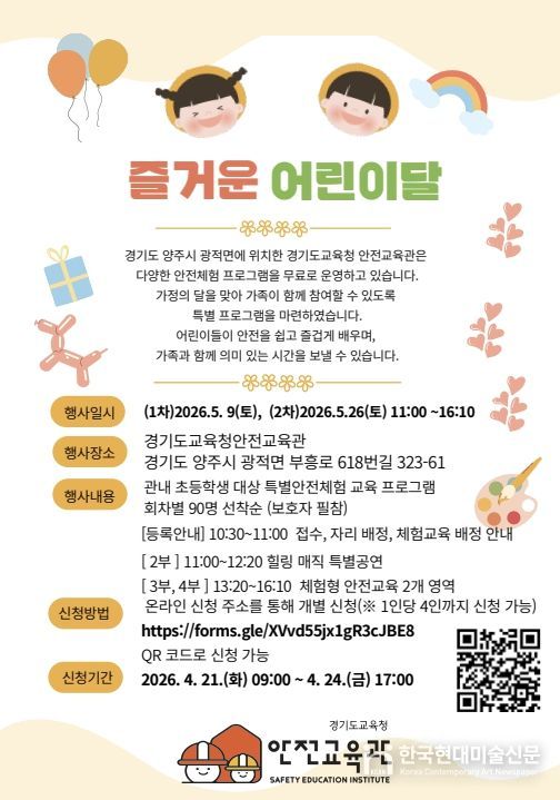 한국현대미술신문 배윤섭 기자 | 경기도교육청안전교육관이 가정의 달을 맞아 가족이 함께 참여해 안전의 중요성을 쉽고 즐겁게 배울 수 있도록 ‘가정의 달 안전교육 특별 프로그램’을 운영한다.
