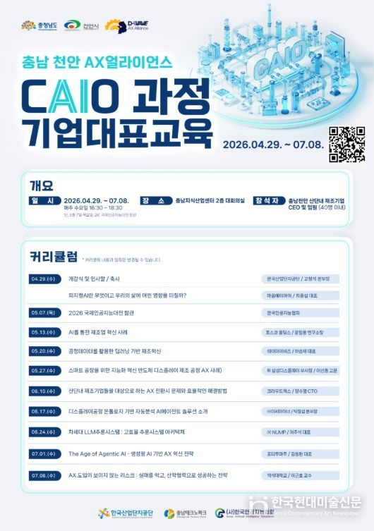 한국현대미술신문 신정은 기자 | 천안시가 지역 제조기업 경영진의 인공지능(AI) 이해도와 활용 역량을 높여 기업 경쟁력을 강화하기 위한 전문 교육 과정 운영에 본격적으로 나선다.