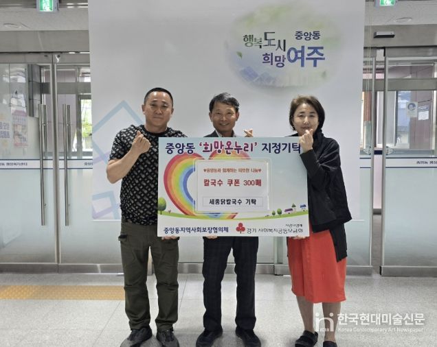 한국현대미술신문 배윤섭 기자 | 관내 중앙동에 위치한 세종닭칼국수는 최근 지역 내 식사 취약계층을 돕기 위해, 300만원 상당의 칼국수 쿠폰 300장을 기부하며 따뜻한 나눔을 실천했다.