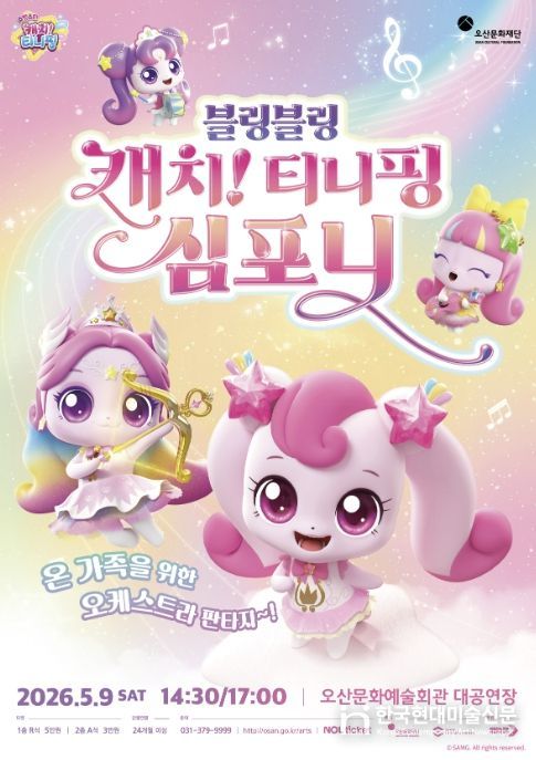 한국현대미술신문 배윤섭 기자 | 오산문화재단은 어린이날을 맞아 온 가족이 함께 즐길 수 있는 오케스트라 공연 ‘블링블링 캐치! 티니핑 심포니’를 선보인다고 밝혔다. 이번 공연은 인기 애니메이션 ‘캐치! 티니핑’ 시리즈의 OST를 오케스트라 라이브로 감상할 수 있는 무대로, 어린이뿐 아니라 가족 단위 관람객들에게 특별한 문화 경험을 제공할 예정이다.