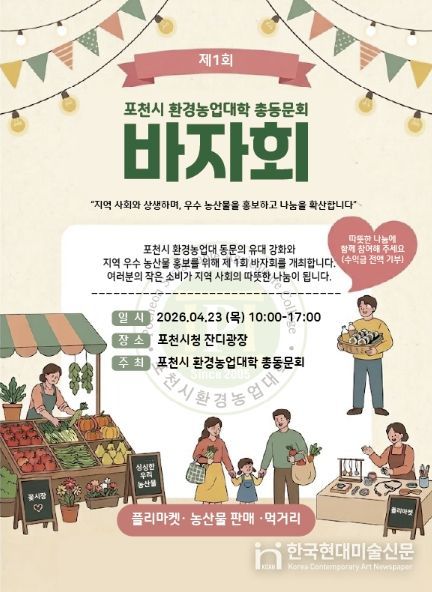 한국현대미술신문 배윤섭 기자 | 포천시 환경농업대학 총동문회가 오는 4월 23일, 지역사회와의 상생과 나눔을 실천하기 위한 ‘제1회 나눔 바자회’를 개최한다.