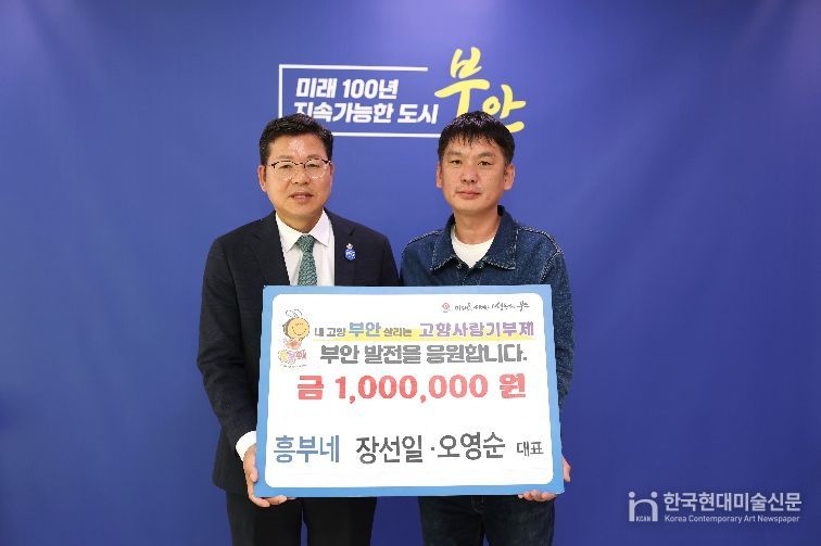 한국현대미술신문 기자 | 부안군은 지난 20일 관내에서 한식당 ‘흥부네’를 운영하는 장선일·오영순 대표가 고향사랑기부금 100만원을 기탁했다고 밝혔다.