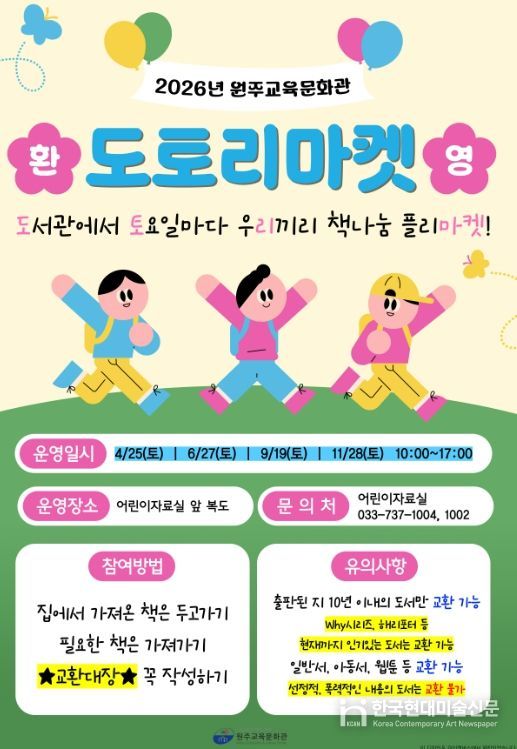 한국현대미술신문 원진 기자 | 원주교육문화관은 4월 25일부터 책나눔 ‘도토리마켓’을 운영한다.