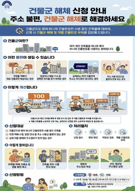 이에 군은 2026년 4월부터 건물군으로 묶여 하나의 건물번호만 사용 중인 건축물 중 해체를 희망하는 지역을 대상으로 신청·발굴을 통해 지속적인 정비 체계를 구축할 방침이다.