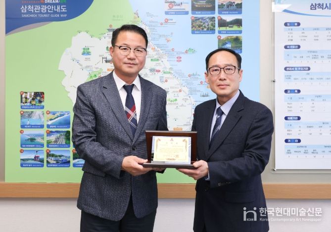 한국현대미술신문 원진 기자 | 삼척시는 4월 20일 '희망 2026 나눔캠페인' 기간에 고액기부단체로 선정된 종단대순진리회 성주회(사립강원종합박물관)에 이웃돕기 나눔확산 문화에 기여한 공로를 기리기 위한 감사패 전달식을 가졌다.