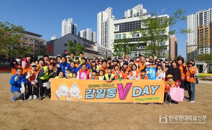 한국현대미술신문 배윤섭 기자 | (재)하남시자원봉사센터는 지난 18일, 자원봉사자 70여 명이 참여한 가운데 환경정화 캠페인“감일동 V-DAY”행사를 주민들의 적극적인 참여속에 성공적으로 마무리 했다.