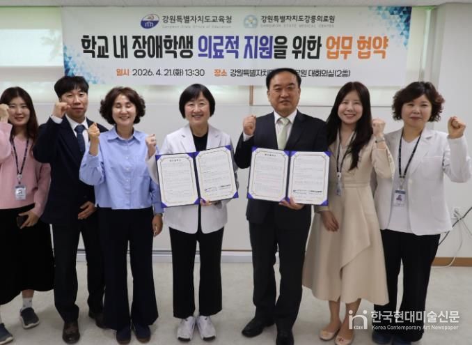 한국현대미술신문 원진 기자 | 강원특별자치도교육청은 4월 21일 13시 30분, 강원특별자치도강릉의료원과 강릉·동해 지역 특수학교 중도장애학생의 학교 내 의료적 지원 강화를 위한 업무협약(MOU)을 체결한다.