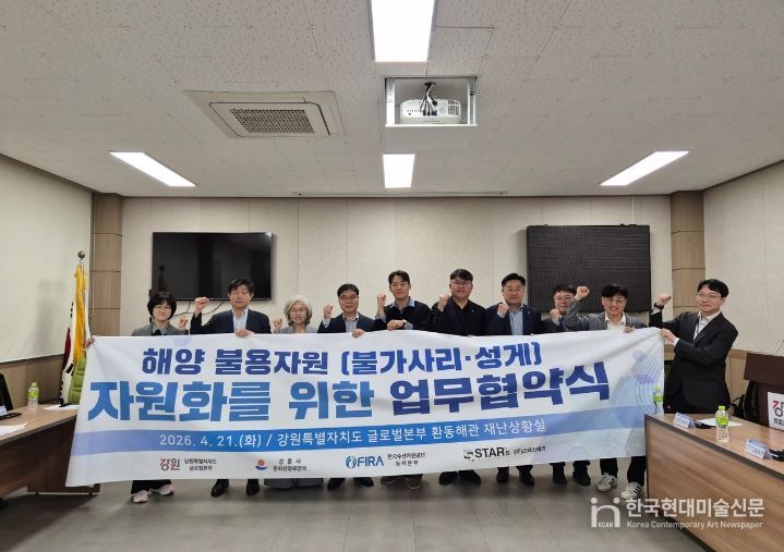 한국현대미술신문 원진 기자 | 강원특별자치도 제2청사(본부장 손창환)는 4월 21일 강원특별자치도청 제2청사 환동해관에서 강릉시, 한국수산자원공단, ㈜스타스테크와 함께 ‘해양 불용자원 자원화’를 위한 업무협약을 체결했다고 밝혔다.