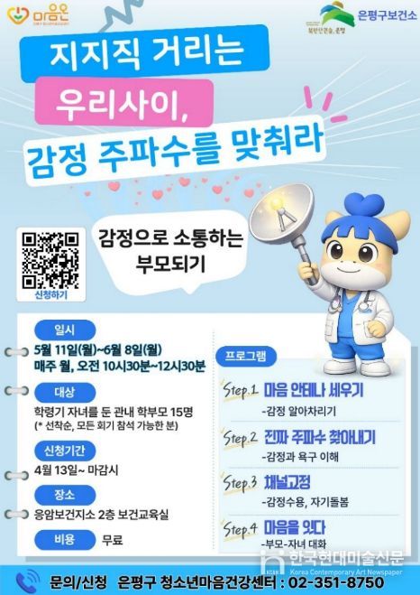 한국현대미술신문 배건 기자 | 서울 은평구는 부모 집단상담 프로그램 ‘감정으로 소통하는 부모 되기 - 지지직거리는 우리 사이, 감정 주파수를 맞춰라’를 운영한다고 밝혔다.