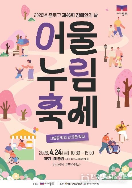 종로구는 제46회 장애인의 날을 맞아 4월 24일 10시 30분부터 15시까지 마로니에 공원에서 '2026년 종로구 어울누림 축제'를 개최한다.